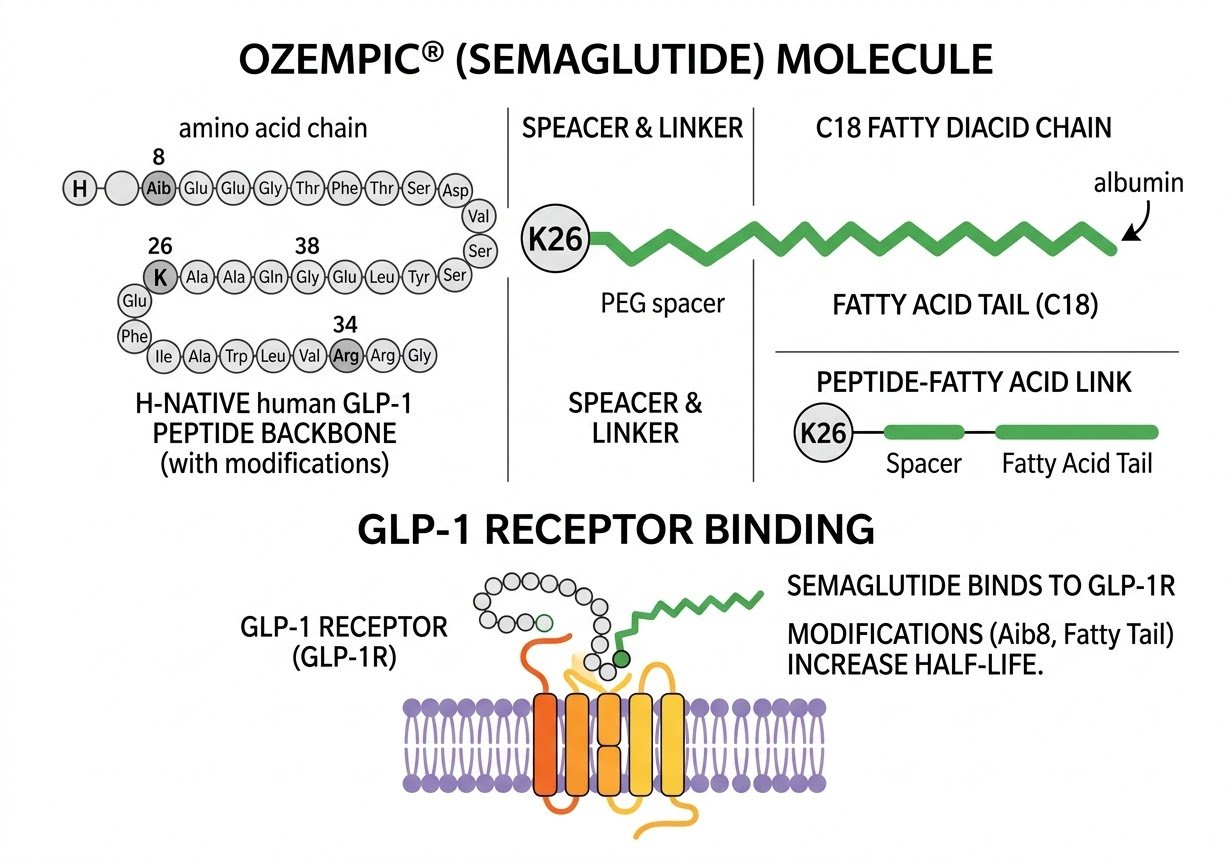 Ozempic binds to GLP-1 receptors as if it is a natural molecule.